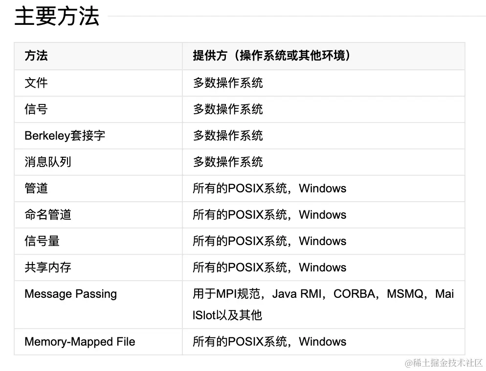 进程间通信(IPC,Inter-Process Communication),指至少两个进程或线程间传送数据或信号的一些技术或方法。进程是计算机系统分配资源的最小单位(进程是分配资源最小的单位,而线程是调度的最小单位,线程共用进程资源)。每个进程都有自己的一部分独立的系统资源,彼此是隔离的。为了能使不同的进程互相访问资源并进行协调工作,才有了进程间通信。
