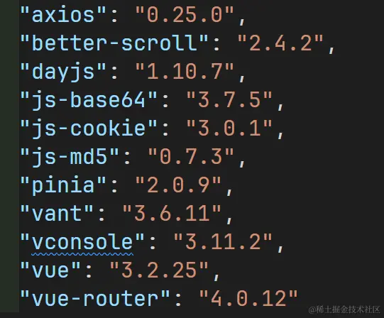 此外,还要锁定项目中依赖包的版本。为了锁定项目中npm包的依赖版本, 我把package.json中的dependencies和devDependencies两部分依赖包版本中的~和^都去掉了,就像下面这样,锁死直接依赖包版本。