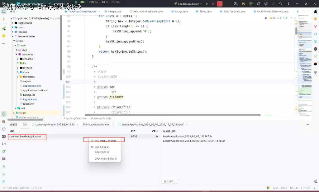 项目起来后,这边会刷出启动的进程,然后我们需要附加Profile