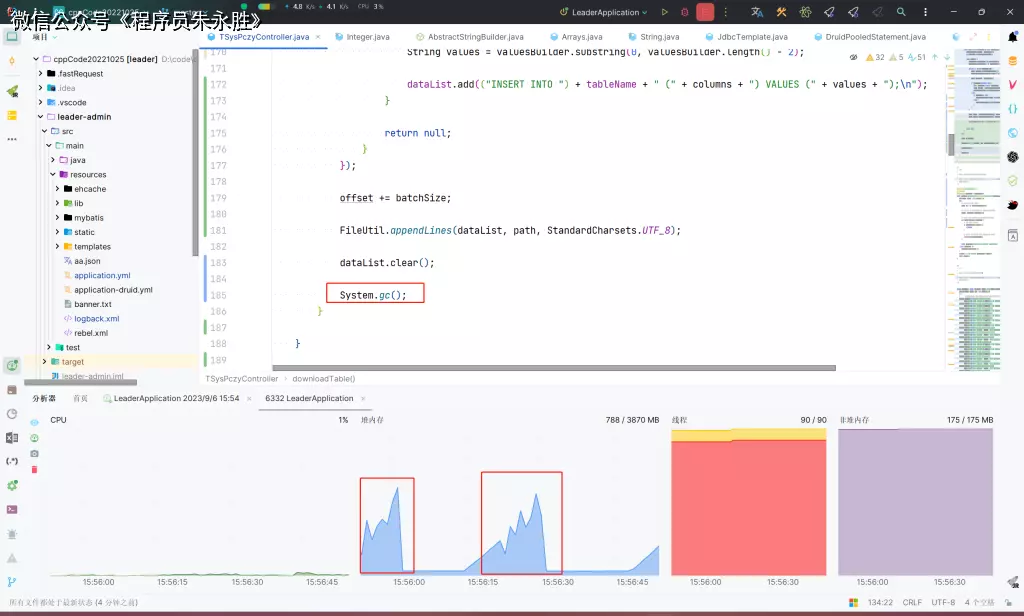这里能看到这种情况是因为,我优化了一下,在每次处理完之后就手动GC一下,如果不手动GC大概处理三轮就OOM了