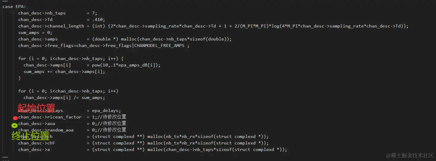 chan_desc->ricean_factor = 1;//待修改位置为例,查找这句话的起点和终点。