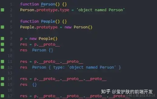 原型同样也可以通过 proto 访问到原型的原型,比方说这里有个构造函数 Person 然后“继承”前者的有一个构造函数 People,然后 new People 得到实例 p