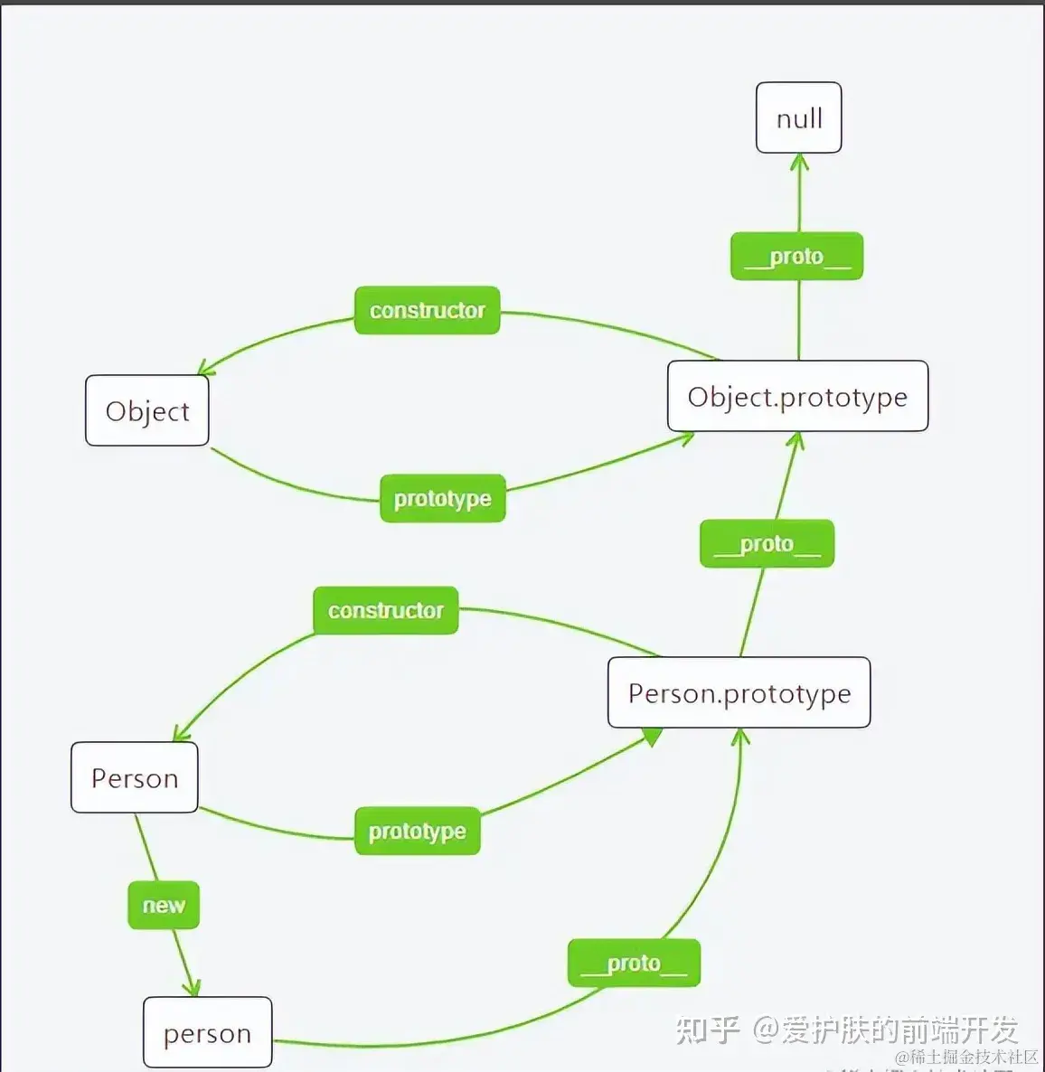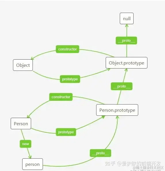 也就是Person是构造函数,Person.prototype就是原型,那么由此可见,就得到了下面的关系图。