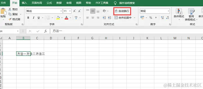 excel表格换行方法2:使用自动换行选项