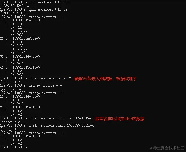 6.XTRIM key MAXLEN|MINID