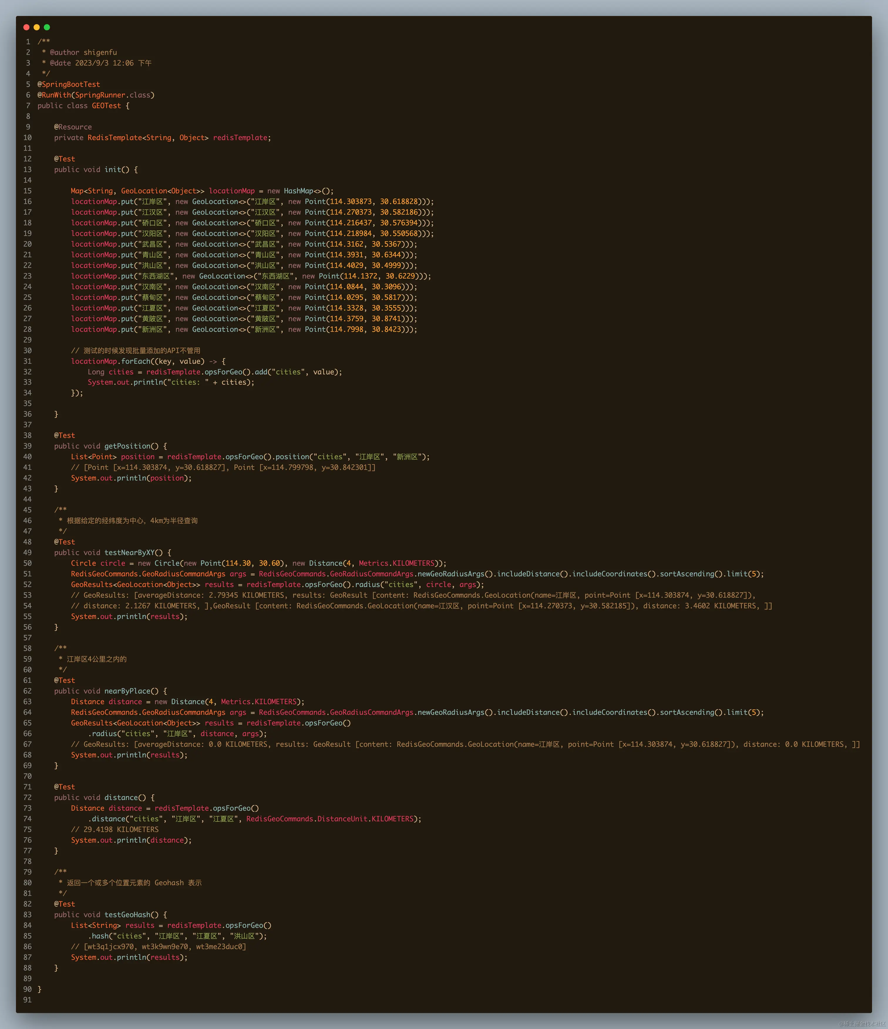 以上的代码案例也参考:Redis GEO 常用 RedisTemplate API(Java),感谢作者提供的代码案例支持。
