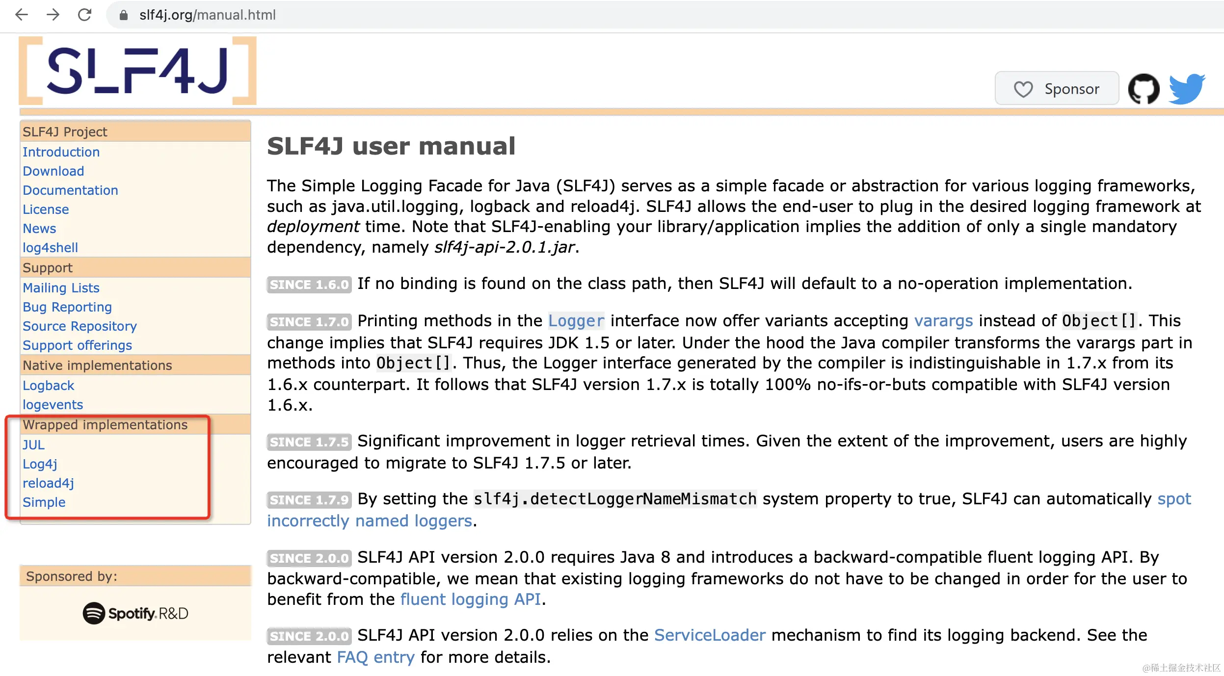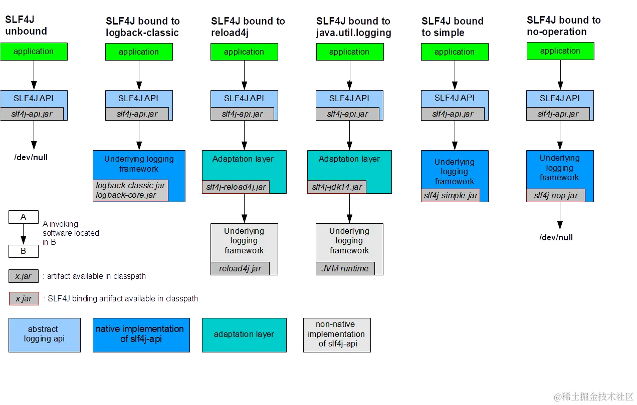 从 2.0.0 开始,SLF4J 中的 bindings 被称为 providers 。尽管如此,总体思路还是一样的。SLF4J API 版本 2.0.0 依赖 ServiceLoader 机制来查找其日志记录后端。有关更多详细信息,请参阅相关的常见问题解答条目。