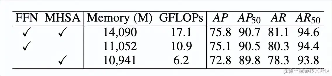 为了充分探索ViTPose中各个模块对于姿态估计任务的贡献,ViTPose进一步探索了仅使用FFN模块或者MHSA模块进行训练而保持其他模块不动的训练方式。结果如表4所示。仅调整FFN模块可以达到和全部可训练相当的效果,而只训练MHSA模块则会带来较大的性能下降,说明FFN模块负责更多特定任务相关的建模,在下游任务迁移学习中发挥更大作用。