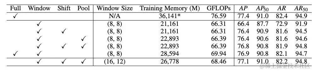 由于使用全注意力方式的计算复杂度,在使用大尺寸特征图进行训练时,ViTPose模型的显存消耗会大幅度增长。为此,ViTPose也探索了能否在微调阶段使用不同的注意力方式进行计算。如表3所示,使用窗口注意力机制的ViTPose在占用更少显存消耗的情况下可以达到和使用全注意力机制的ViTPose相当的效果。