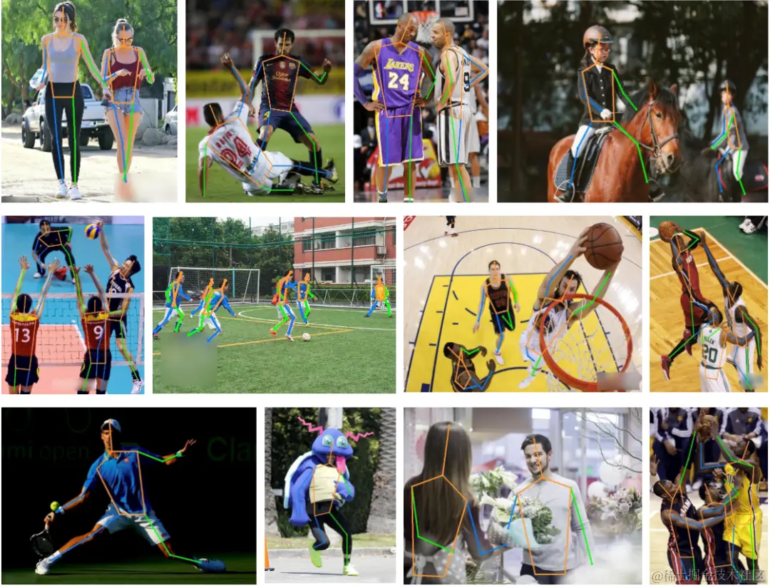 如图3-8所示,ViTPose+在多个姿态估计数据集和多种姿态估计任务上均可以得到优异的结果,较好的应对遮挡、截断等多种富有挑战性的场景。这充分展现了简单的视觉transformer作为姿态估计基础模型的潜力。