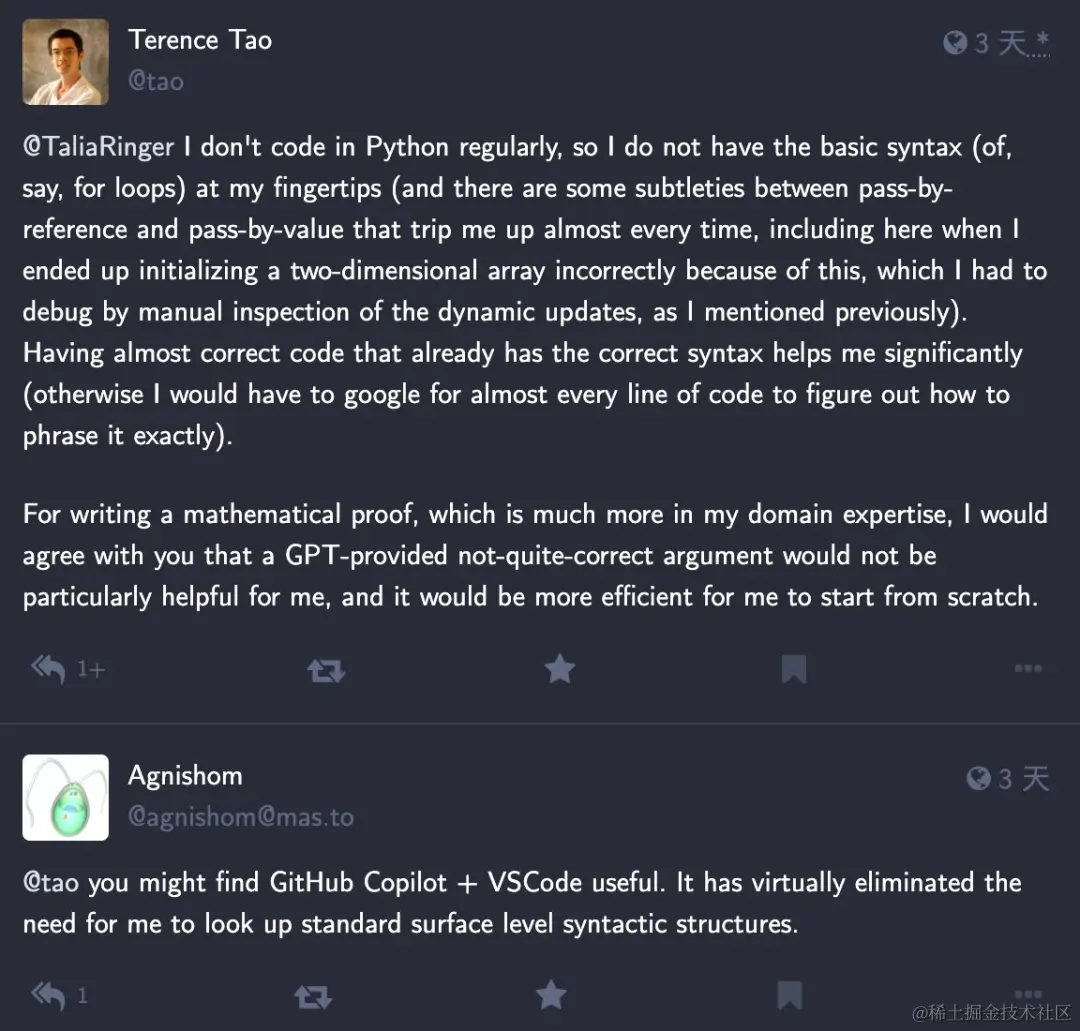 在讨论中,陶哲轩提到:「完整正确的 Python 代码对解决数学问题有很大帮助,但他不常用 Python 编写代码,GPT 提供的代码有些许错误,需要手动改正。」有网友随即建议将 GitHub Copilot 和 VSCode 结合使用: