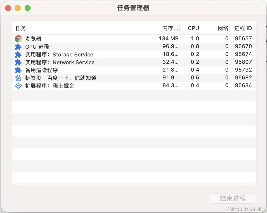 - 网络进程。面向渲染进程和浏览器进程等提供网络下载功能,主要负责页面的网络资源加载,之前是作为一个模块运行在浏览器进程里面的,直至最近才独立出来,成为一个单独的进程。