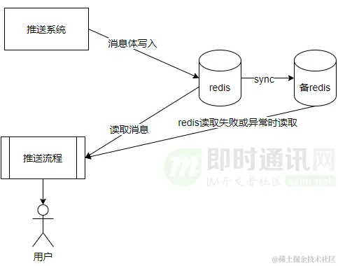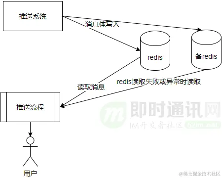 因此:我们考虑对Redis集群做相关容灾方案设计,实现系统在Redis集群故障期间,也能及时推送消息并保证消息不丢失。