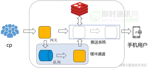 增加缓存队列后的推送架构: