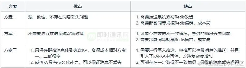 而Redis集群却在0.5ms。如果在推送系统对群推消息体进行双写。这个时延是不能接受的。