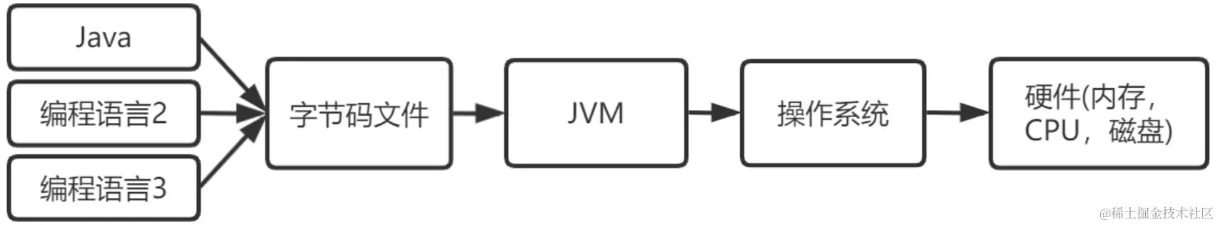 - Java虚拟机就是二进制字节码的运行环境,负责装载字节码到其内部,解释/编译为对应平台上的机器指令执行。