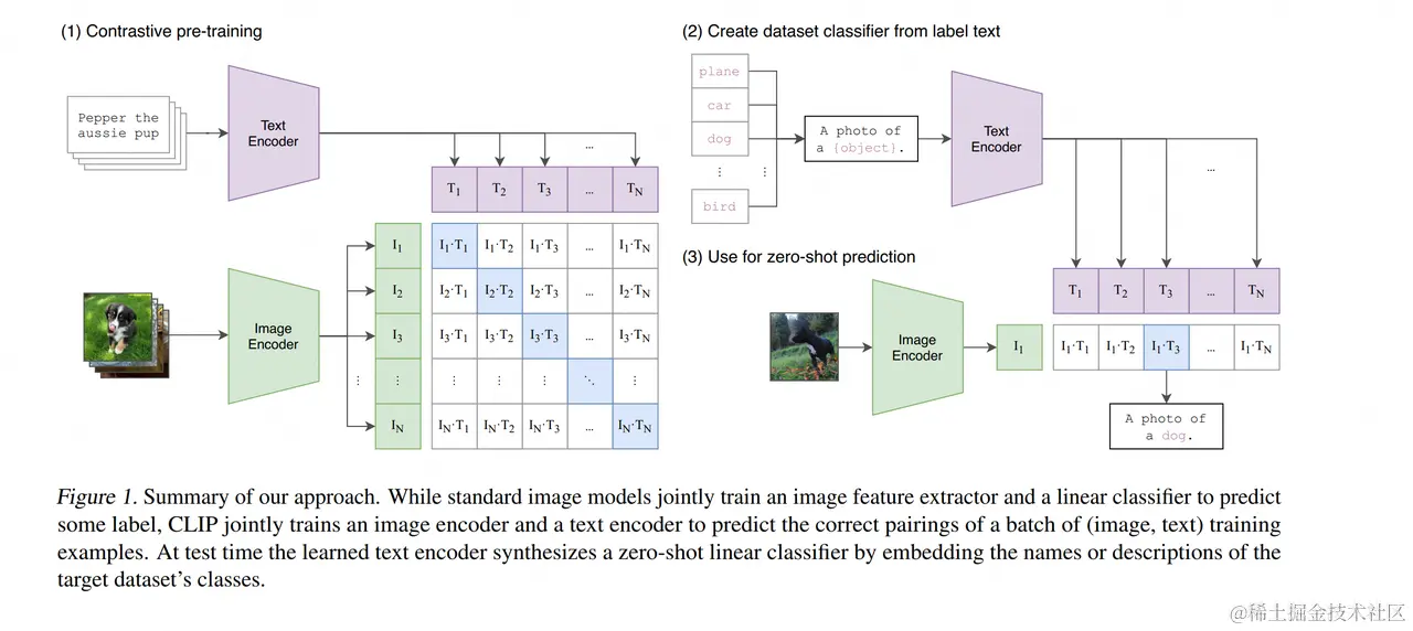 (1)首先,我们的训练数据是(文字,图片)文本对。这和CLIP的预训练数据非常相似。在原始论文中,文字被称为caption,图像被称为image。