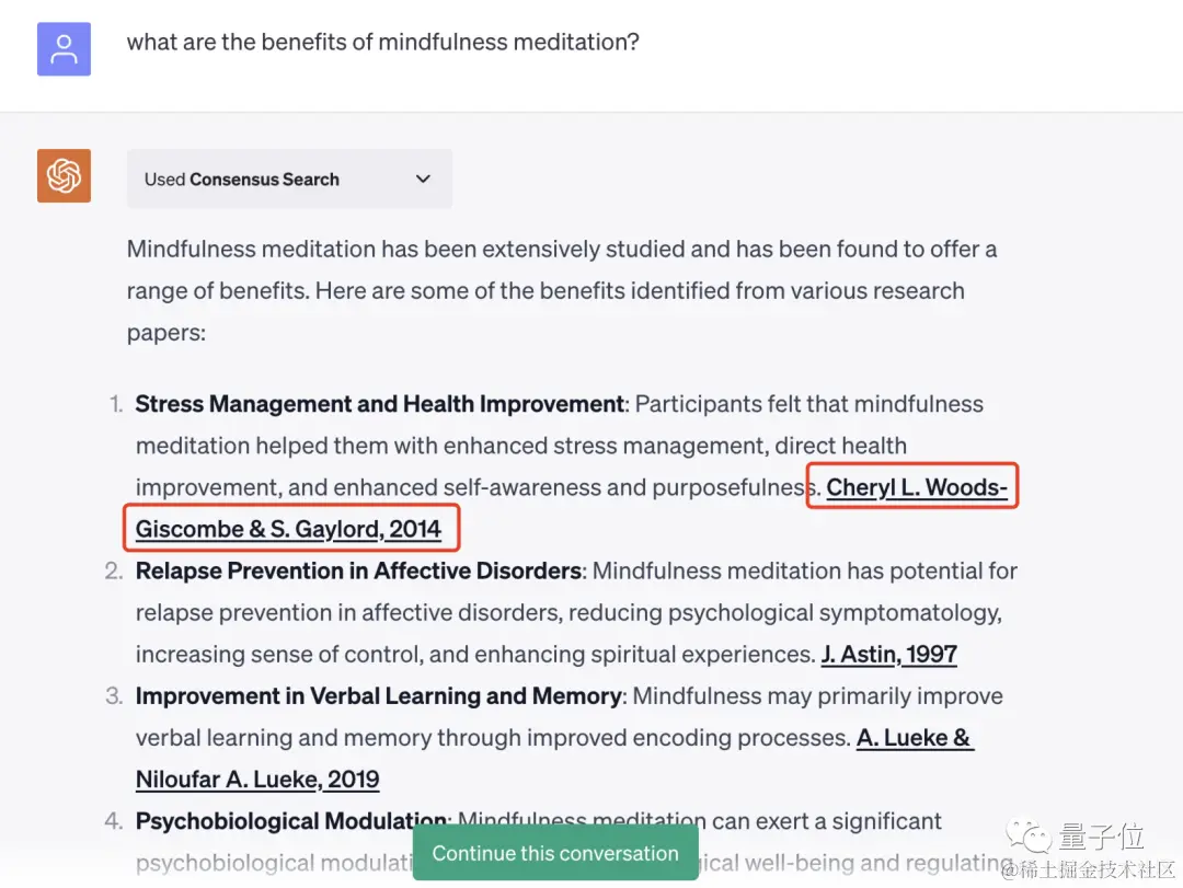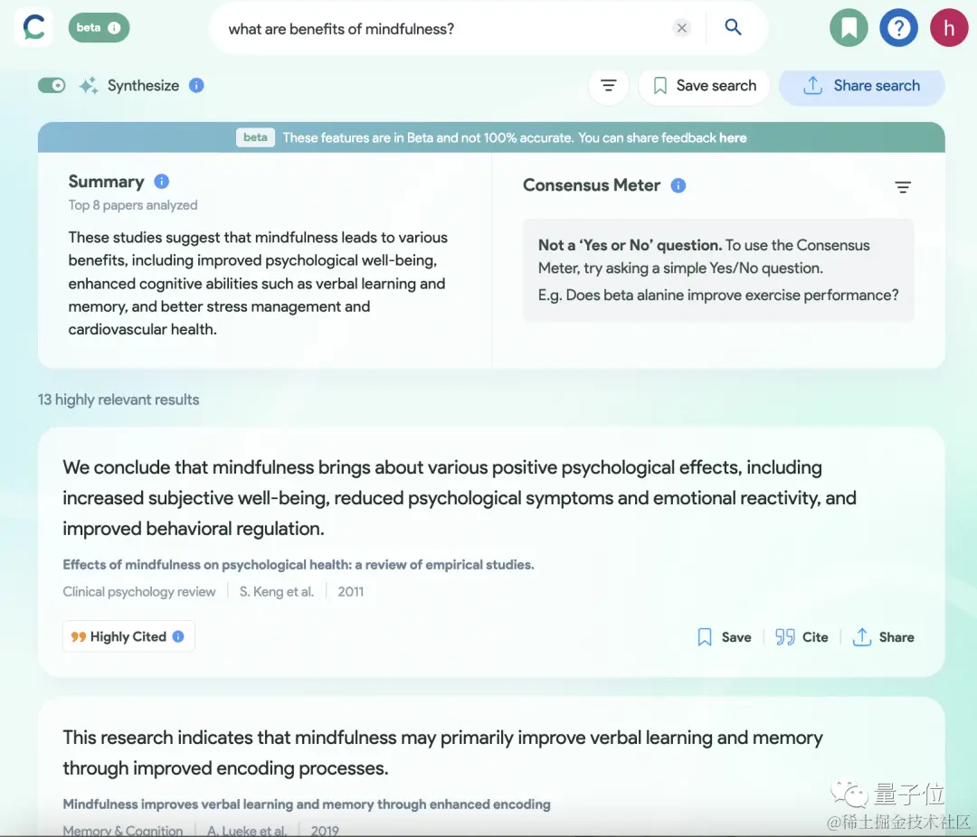 最最重要的是,不像 ChatGPT 有时会编造假链接,Consensus 给出的论文绝对能搜到(全部经过同行评审)。