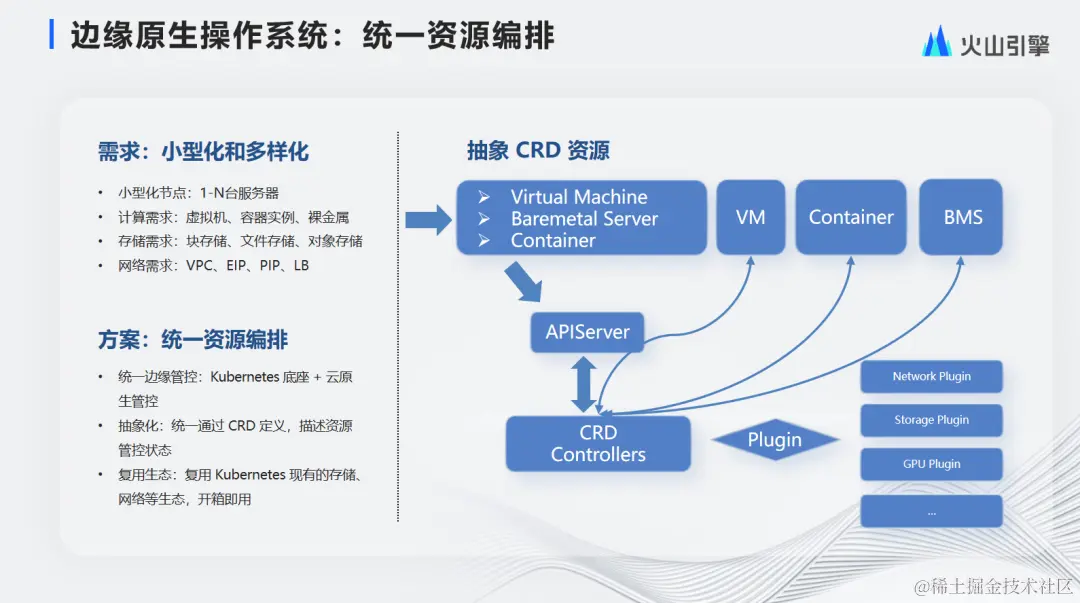 基于边缘计算的特色,最终演变出了云原生超融合的架构。在同一套资源池上既实现了虚拟机也实现了容器和裸金属的管控和部署,具有以下两点优势: