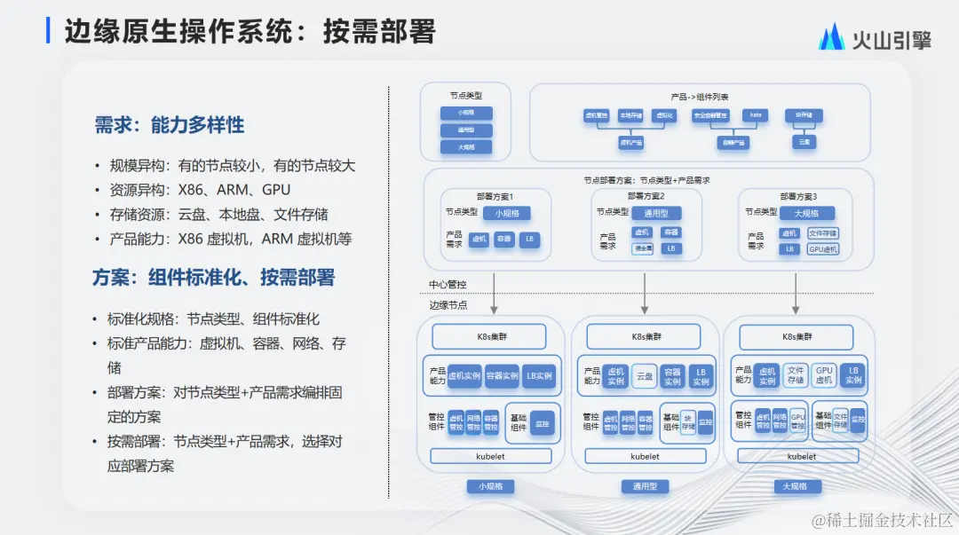 计算需求:由于业务的诉求多样,需要在边缘节点同时支持虚拟机、容器和裸金属等多种产品形态。
