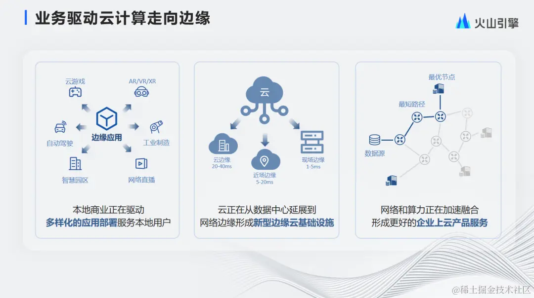 ①应用驱动:越来越多本地化应用的出现,包括云游戏、AR/VR、工业制造、网络直播、智慧园区、自动驾驶、辅助驾驶等,这些本地商业驱动多样化的应用部署在更靠近用户的地方。