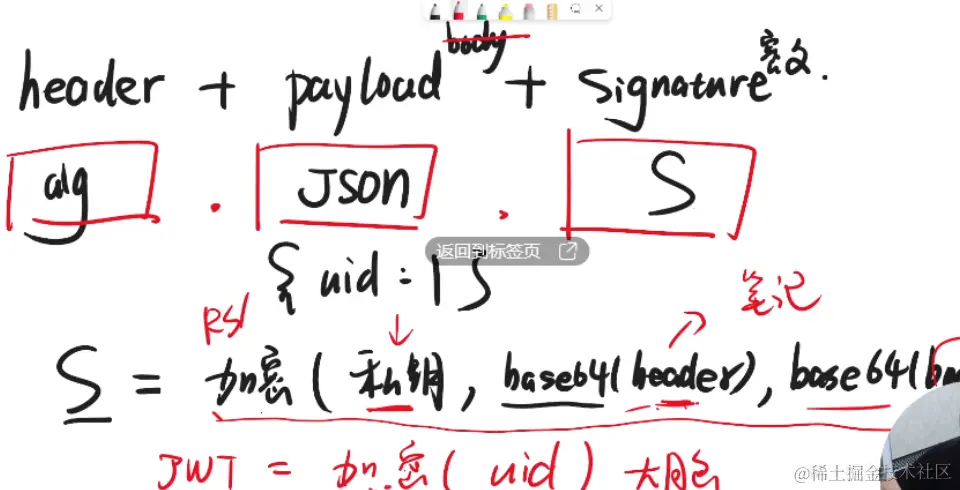 get/user==========》1. 服务器看Auth中有没有jwt,有的话就解密======》2. 看密文中的uid和 uid=1 是不是一样的(密文里面有uid=1了,但是灰色部分的uid=1是只读的并不能改,密文就是验证是不是uid=1)======》3.验证成功之后,服务器把uid的信息以json形式发给前端