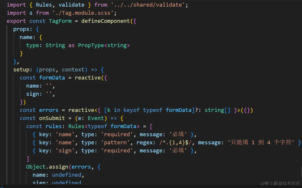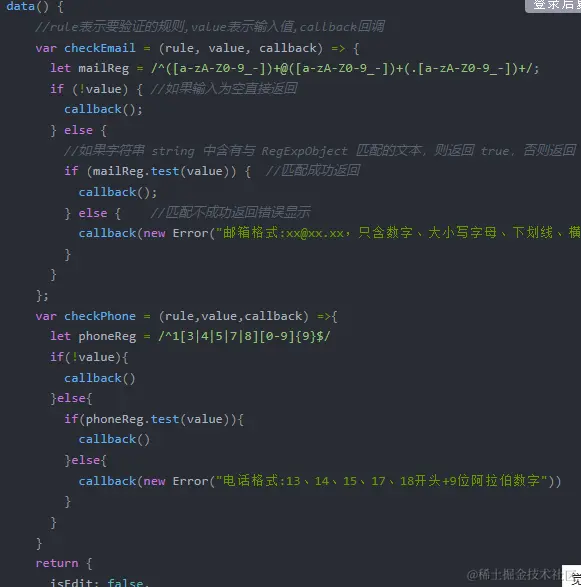 2.绑定validator,validator绑定验证规则变量,需要注意的是验证规则变量不能被data return出去