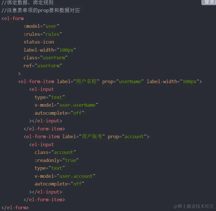 element中表单组件提供了表单验证功能,通过rules属性传入验证规则,注意form-item需要用prop传入rules设置的规则