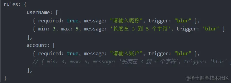 trigger:设置校验的触发方式,change 数据改变时候触发,blur 失去焦点时触发(没有任何输入时,不会触发change,但是会触发blur事件)