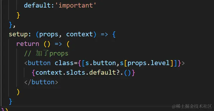 在之前封装的Button组件中,希望能设置不同样式的button按钮,于是给button组件的props绑定了level属性