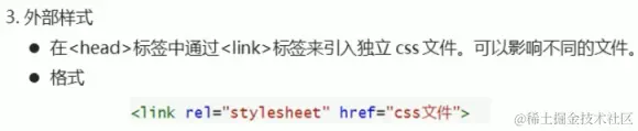 那么现在我们来讲第三种方式,外部样式,外部样式是在标签中通过标签来引入独立的css文件,可以影响不同的文件,其具有最高级别的灵活性,也是我们最为推荐的css引入方式