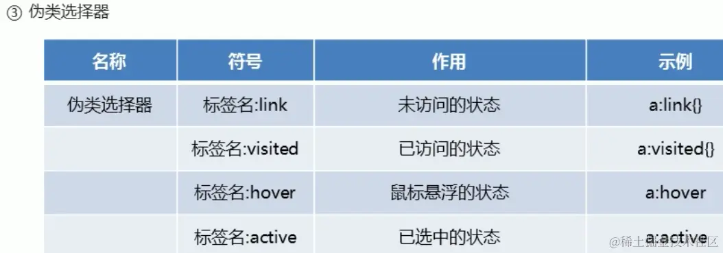 然后我们来讲第三种选择器,伪类选择器,该选择器一般与超链接进行配合使用