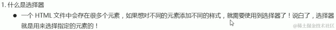 什么是选择器呢?简而言之就是用于选择HTML的指定元素(标签)的