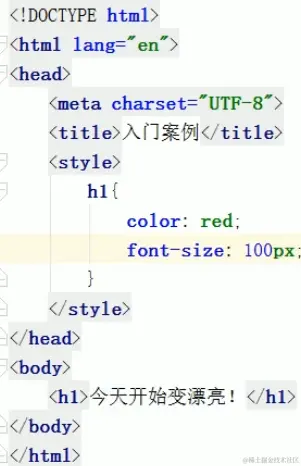 现在我们的目标是要在网页中显示一个较大的红色字体显示的今天开始变漂亮,这就是我们的入门案例,我们先来看看对应的实现步骤