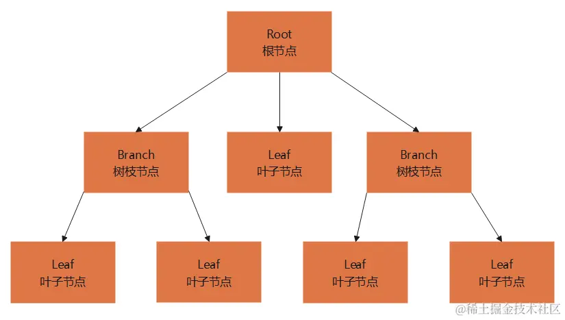 通过上图,可以看到它的结构有3部分组成,和现实当中的大树结构很类似。它包括有Root根节点(相当于大树主干)、树枝节点和叶子节点。根节点连接着树枝节点和叶子节点,而叶子节点不能在连接其他节点。