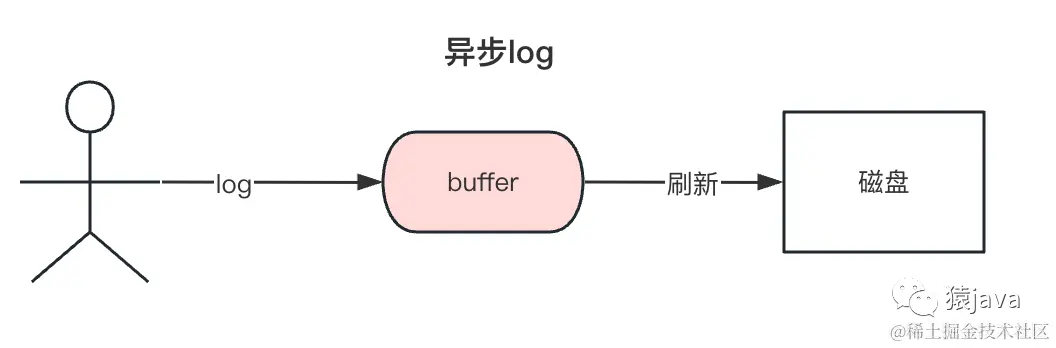 在业务流程中,通常会增加 log来标记一些核心的流程,以及记录错误信息,方便排查问题。但是,log通常是磁盘操作,如果log过多,就会影响API的性能。因此,通常会对log进行精简,或者异步log。如下图: