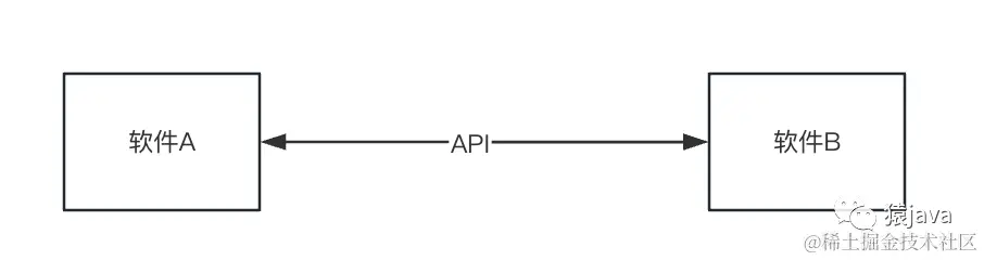 在讲解方法之前,先对API做个简单的介绍。API,Application Programming Interface,翻译为:应用程序接口,它是一种允许两个软件组件使用一组定义和协议相互通信的机制。比如,手机上的天气预报软件,它通过 API 与远程气象系统“交互”,获取天气相关数据,最后再将数据展示在手机上。如下图:软件A通过API与软件B进行交互。