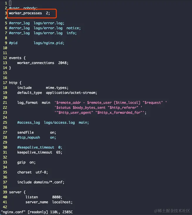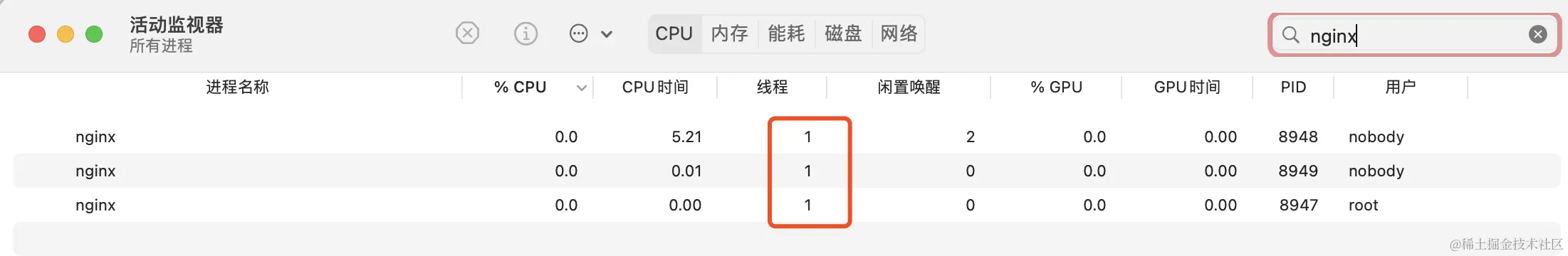 此处的2个用户为nobody的工作进程,在nginx.conf中设置: