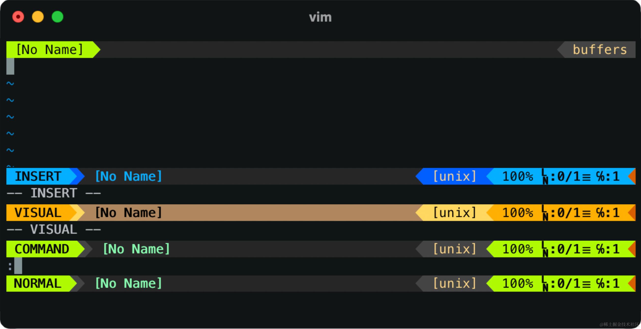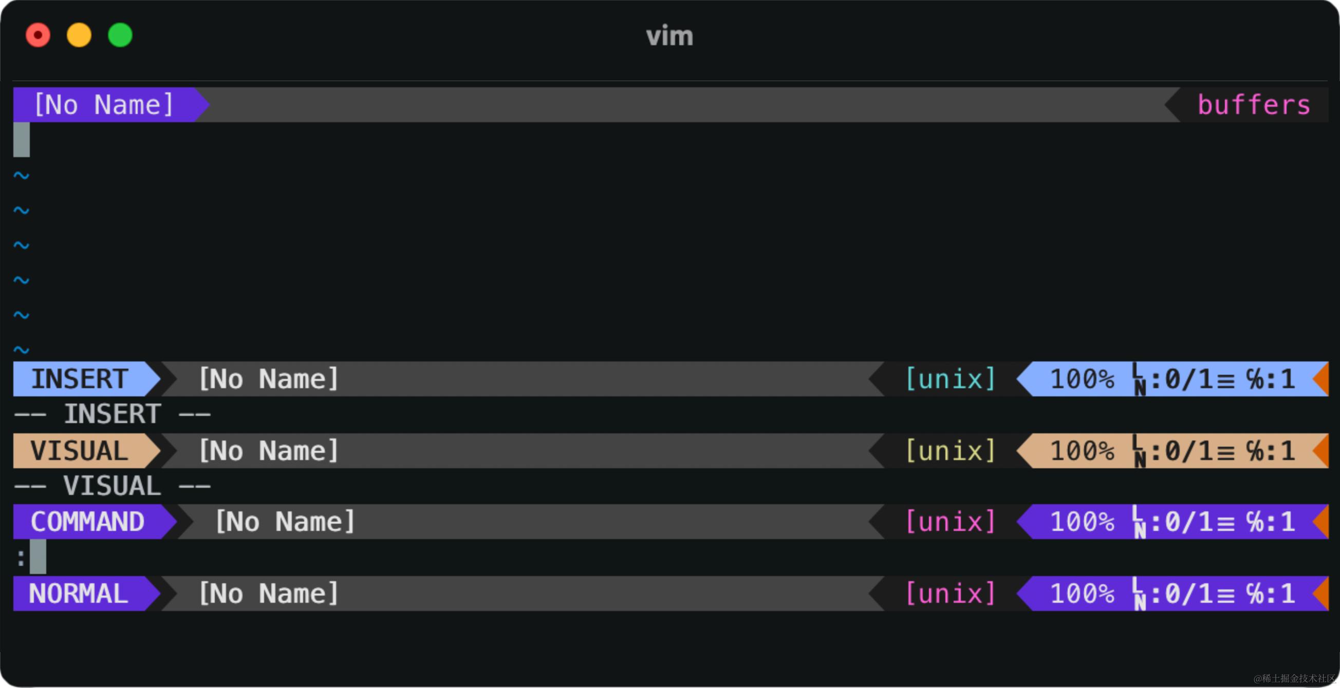 这涉及到 Vim 的几个模式(modes),Vim 共有 7 个基础模式 + 7 个辅助模式。
