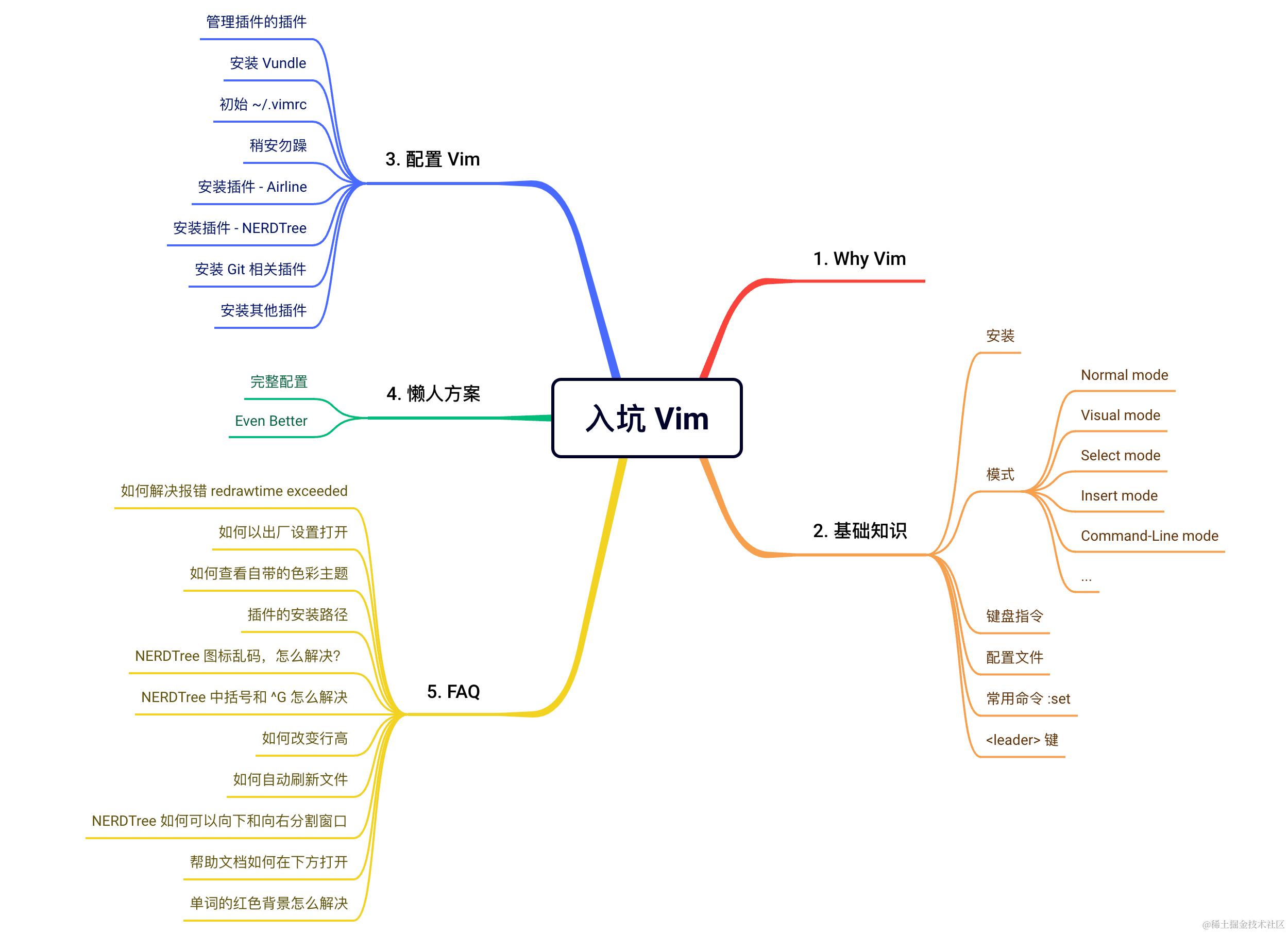 直接跳到文末「完整配置」,有现成完整的 .vimrc,但你会 miss 掉前文逐步详解每个设置步骤背后的原因和设置技巧。