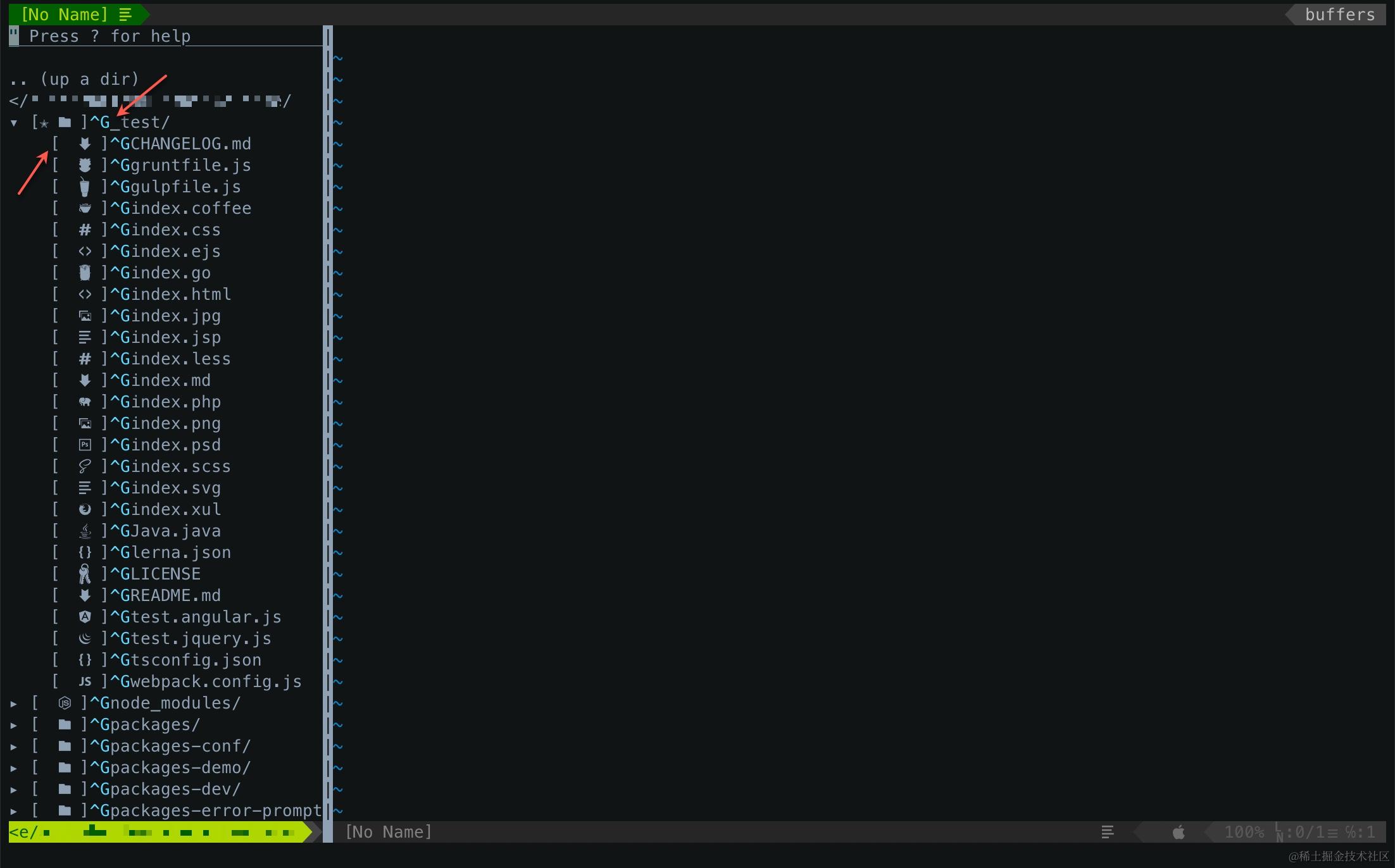你可能看到 NERDTree 的展示很奇怪,每个文件前面有 ^G,文件图标两边还有一对中括号: