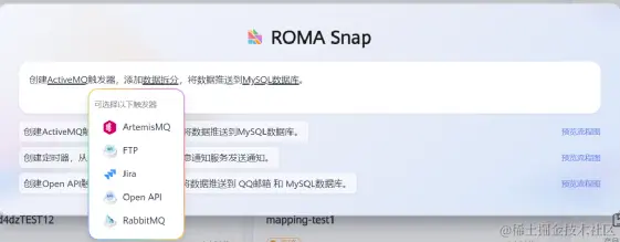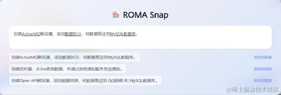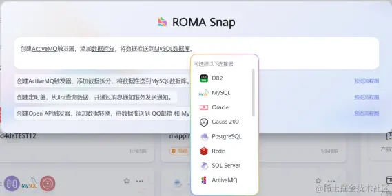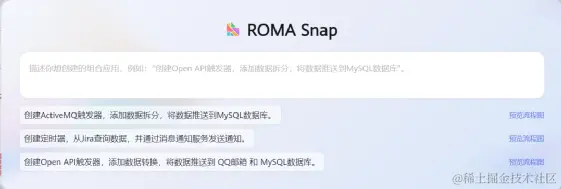 1.智能业务流生成的入口在首页的 “ROMA Snap” 开始,点击 “ROMA Snap” 会弹出对话框。