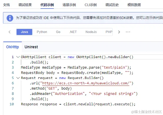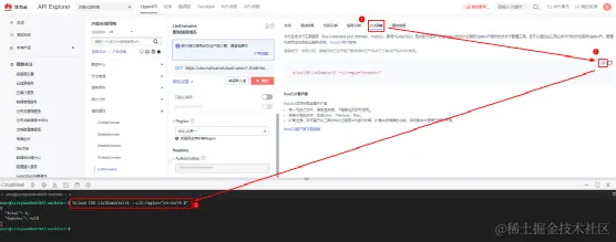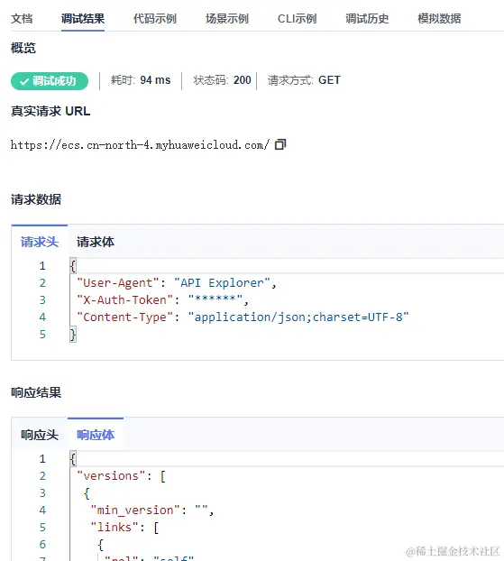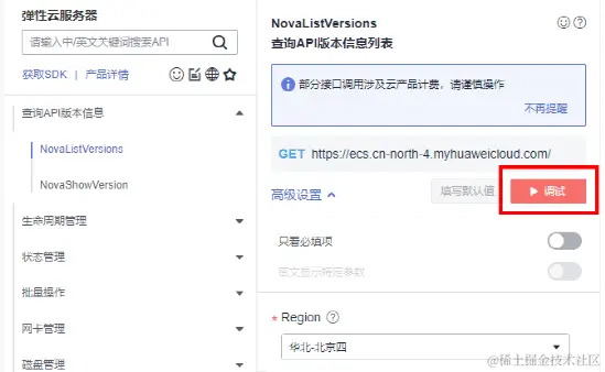 完成后进入华为云API Explorer进行调试↓ 码上「进入」↓