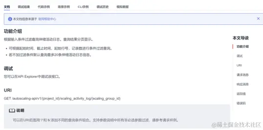 ●API在线搜索华为云API Explorer的API在线搜索功能,可帮助开发者快速检索,支持开发者基于API Explorer全局搜索云产品服务或API,同时支持开发者按产品搜索API。开发者在登录后,也可通过API Explorer门户快速查看最近搜索/使用的产品或API。开发者也可在API Explorer上关注常用产品API。●API参数可视化调试API Explorer支持常用YAML定义参数表格化、可视化,可见即得的参数描述及示例说明,可帮助开发者快速理解参数结构,并支持开发者在线可视化调试API,并可根据自动获取的错误码详情,快速定位问题、解决问题,从而提高开发效率。在全新升级的API Explorer中,开发者在登录状态下,可自动获取Region、Token、Project_id参数值,避免开发者人工查找,提高调试效率。● API文档API文档包含了规范的文档结构、接口说明、请求参数/示例、返回参数/示例、错误码、SDK等,开发者可以快速查阅API详情和参数说明,并可通过文档上的相关链接了解云产品的服务功能