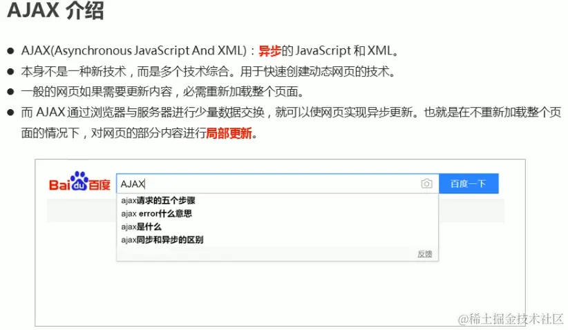 本章节我们来学习AJAX,这虽然说也是前端的技术,但是看了下后面的内容似乎涉及到了java代码本身,所以就稍微认真一点吧,首先来看看AJAX的介绍