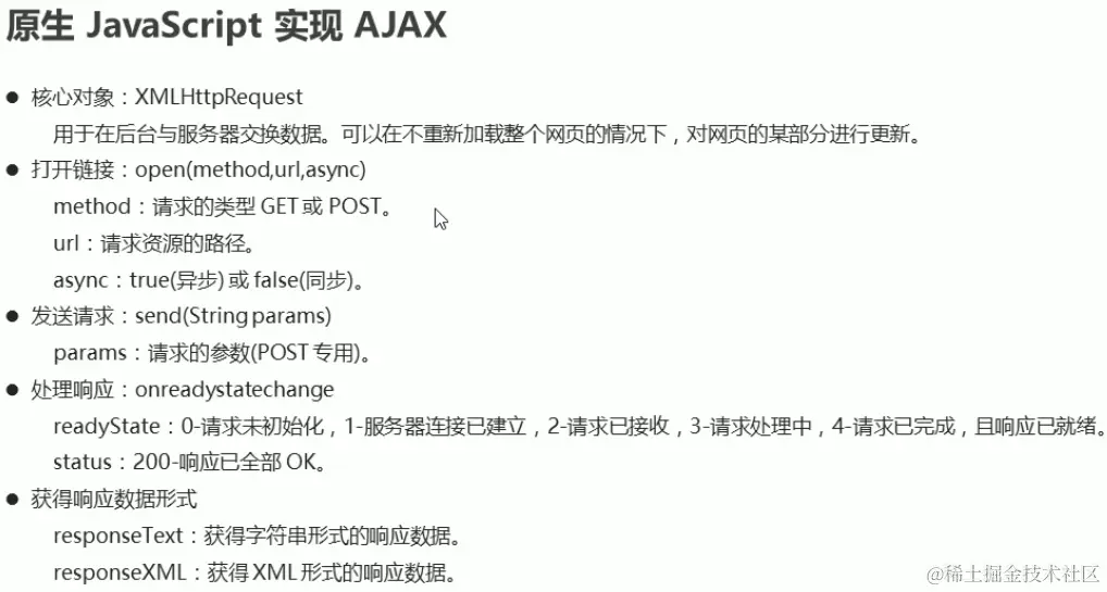 首先AJAX的最重的两点是,其是异步的,其次是其可以实现在不重新加载整个页面的情况下实现对部分内容进行局部更新。