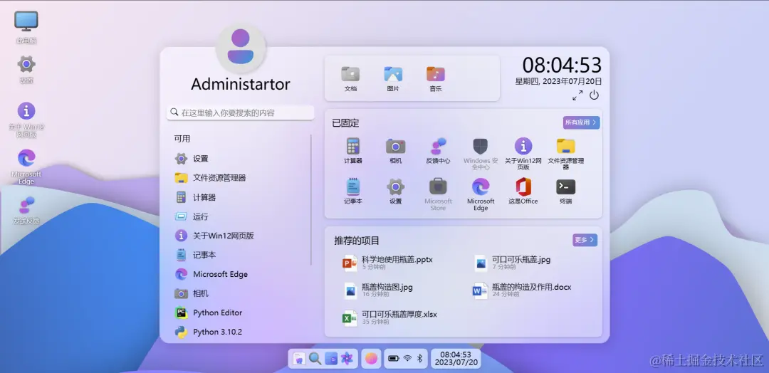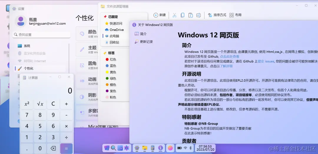 仔细一瞧,原来这是一位开发者看到 Windows 12 概念版(Power by PowerPoint)后深受启发,因而才决定做一个 Windows12 网页版:“此项目基于目前 Windows 版本创造,与微软的 Windows 12 正式版本不一致。此项目绝不附属于微软,且不应与微软操作系统或产品混淆,这也不是 Windows365 cloud PC。”