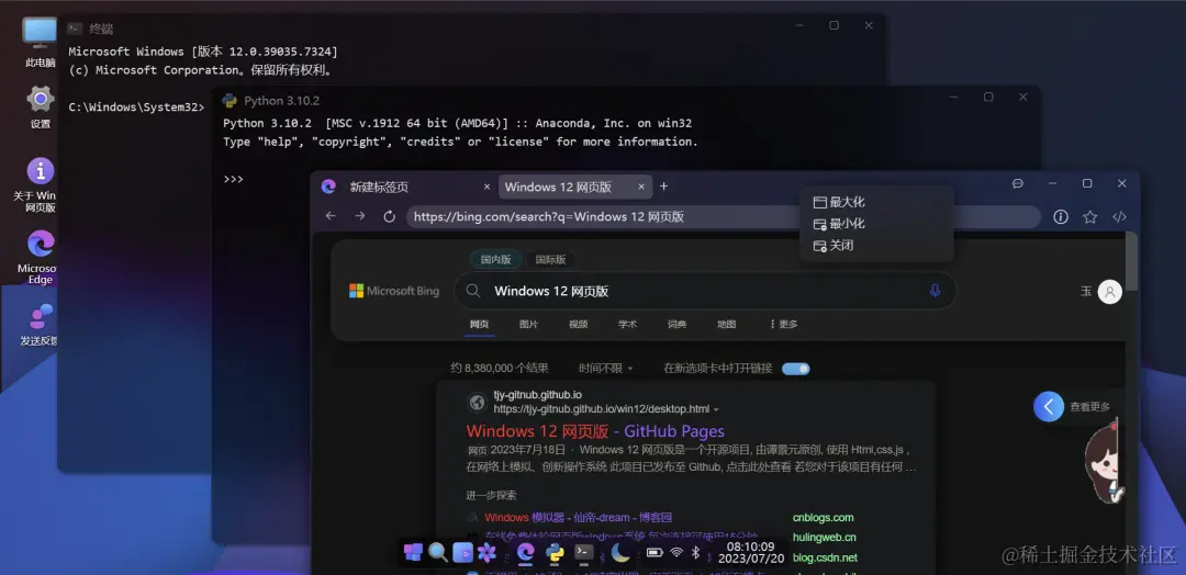 在实现 Windows 12 的基本功能后,谭景元进一步做了一些畅想,目前也实现了几个: