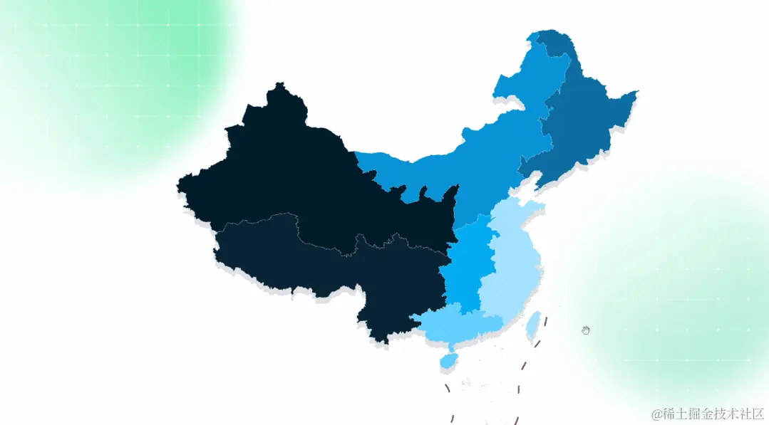 如下是自定义上传的中国(带有大区)json文件,所以能呈现出大区的轮廓。