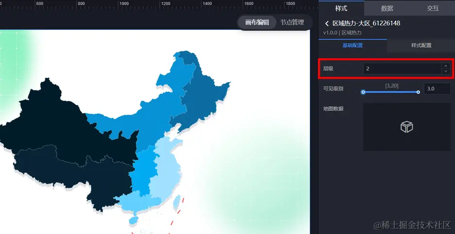 如果配置完成后,省区域的热力图层盖住了大区热力,可以在基础配置中,修改层级。